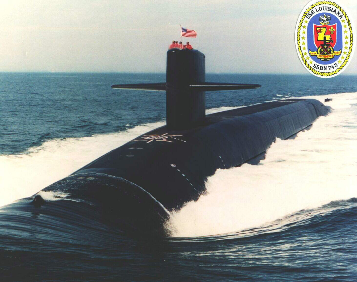 | 919k | Louisiana (SSBN-743) and her seal on the high seas. | USN photo courtesy of Scott Koen & ussnewyork.com. |