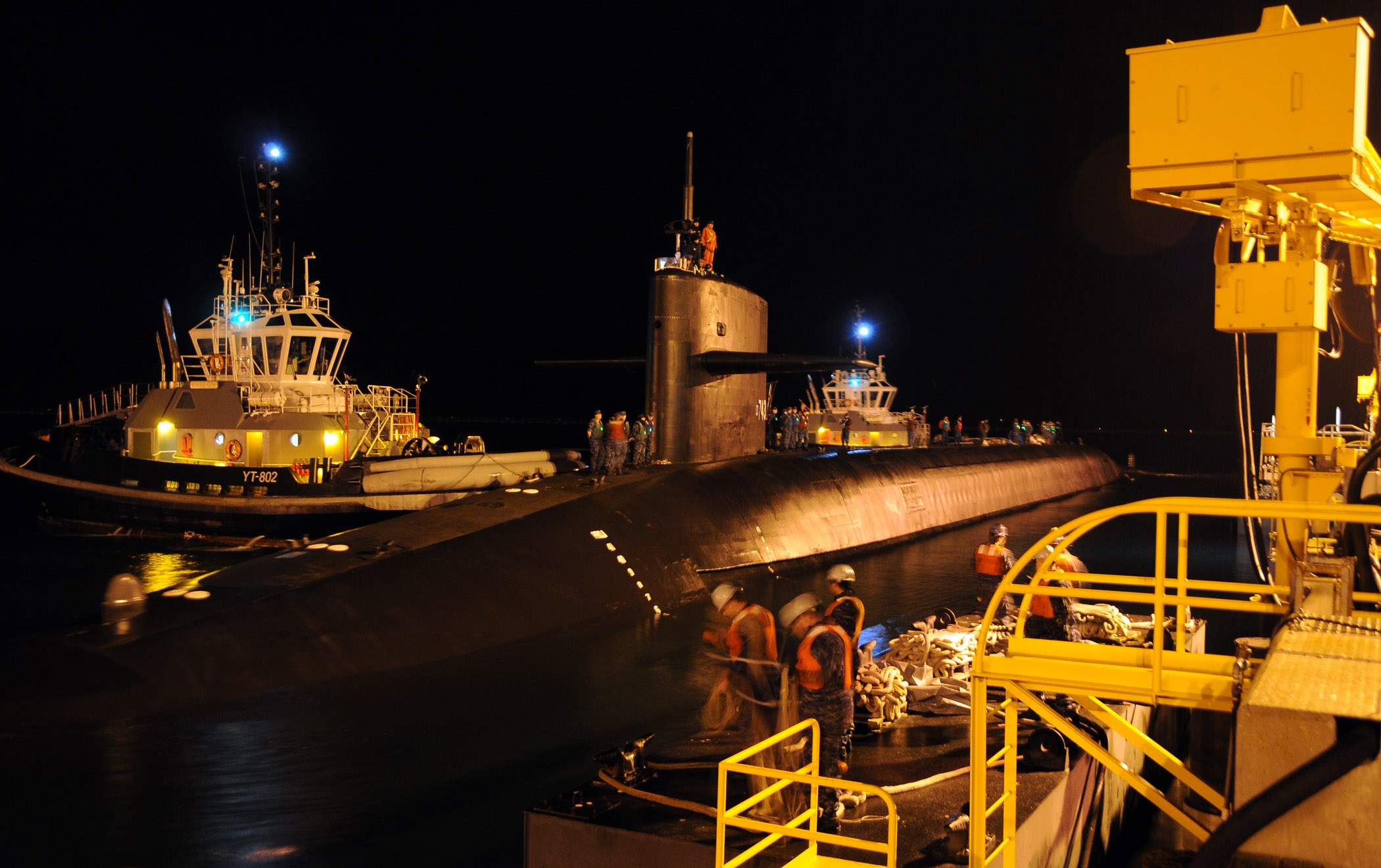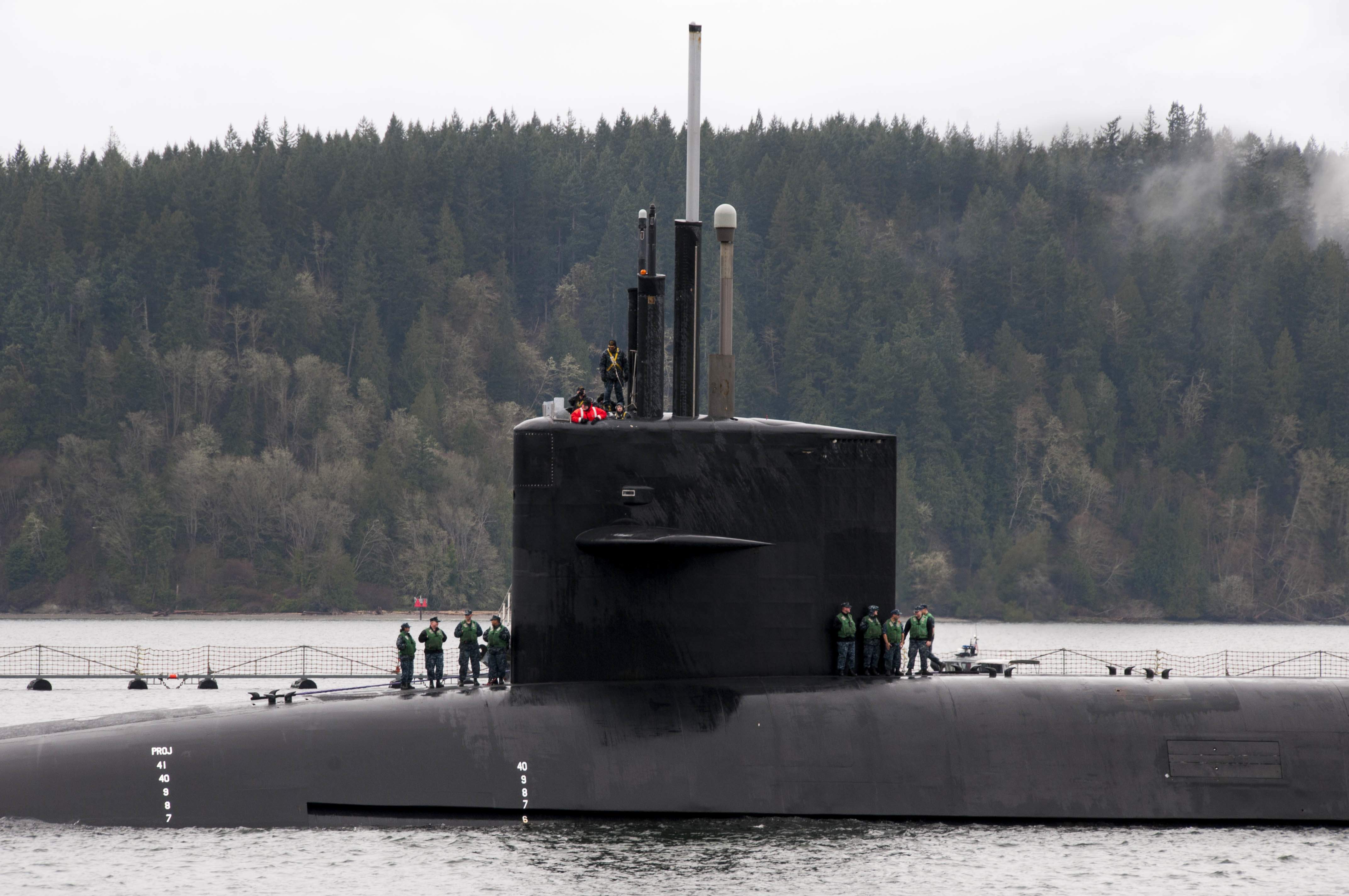 | 217k | The ballistic missile submarine Louisiana (SSBN-743) returns to homeport at Naval Base Kitsap-Bangor following a strategic deterrent patrol on 23 February 2012. | U.S Navy photo # N-GU530-001 by Lt. Ed Early, courtesy of news.navy.mil. |