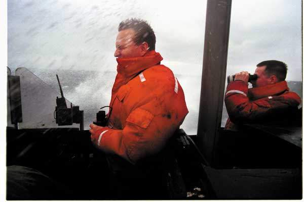 | 20k | STS1(SS) Scott Pitre (left) and SK3 Gregory Hurst scan the horizon aboard Louisiana (SSBN-743). The Navy's newest Ohio-class (SSBN-726-43) submarine got a real stress test from Mother Nature when eight-foot waves pounded her hull during pre-deployment sea trials in April 1999. Louisiana is the final ship of the class to be commissioned.