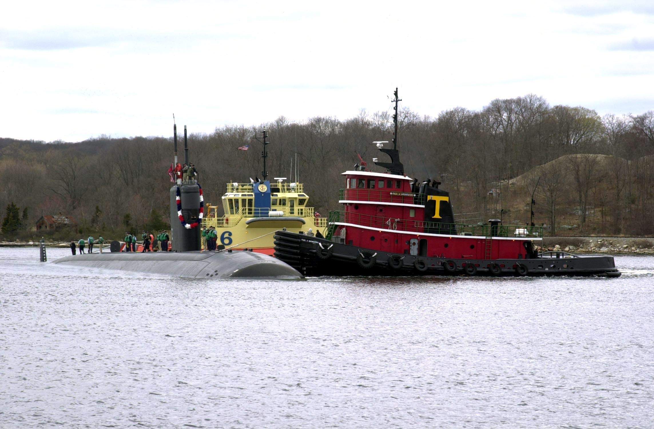 ![]() | 361k | The Los Angeles-class submarine San Juan (SSN-751) is assisted into its berth at NSB New London, CT., 23 April 2003 after returning from an extended deployment in support of Operation Iraqi Freedom. | USN photo # N-0000S-001 by Journalist 1st Class Mark Savage, courtesy of news.navy.mil. | |