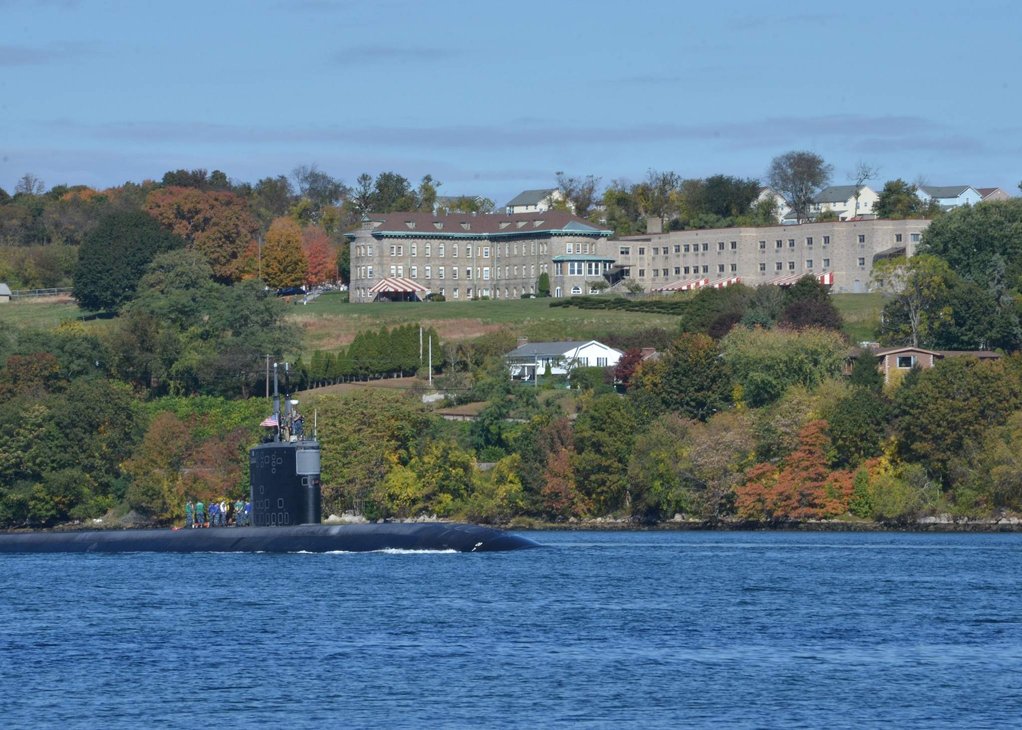 ![]() | 359k | The attack submarine San Juan (SSN-751) transits the Thames River on 15 October 2013 as it departs Groton for a scheduled deployment. | USN photo # 131015-N-TN558-095 by Mass Communication Specialist 1st Class Jason J. Perry, courtesy of news.navy.mil. | |