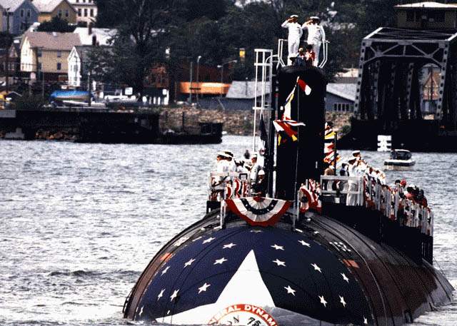 ![]() | 62k | Launching of the Pasadena (SSN-752), at the Electric Boat Division, General Dynamics Corp., Groton, CT on 12 September 1987. | Photo courtesy of creative-woodworking.net & submitted by Bill Gonyo. | |