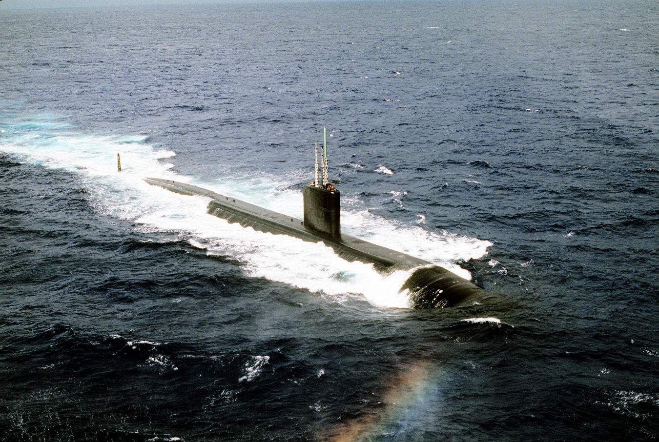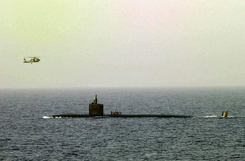 ![]() | 429k | A trio of submarines, the Pasadena (SSN-752) (top), Republic of Korea Ship Lee Jong Moo (SS-66) (center) and Columbus (SSN-762), (bottom) patrol the Pacific Ocean during Exercise RIMPAC '98, 19 July 1998. | USN photo # N-5961C-001 by Photographer's Mate JO1 Spike Call, courtesy of news.navy.mil. | |