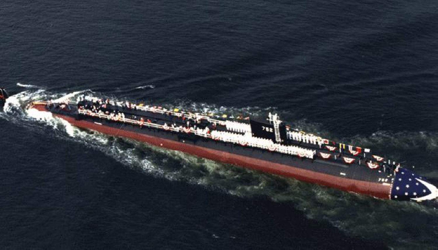 ![]() | 249k | An aerial starboard bow view of the nuclear-powered attack submarine Pasadena (SSN-752) underway near Hawaii on 1 June 1993. | USN photo # DN-ST-95-01190 by PH2 Dale W. Novotasky, from the Department of Defense Still Media Collection, courtesy of dodmedia.osd.mil. and submitted by Bill Gonyo. | |