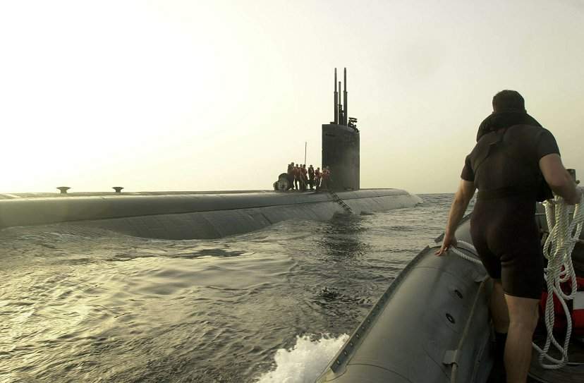 ![]() | 43k | A rigid hull inflatable boat (RHIB) crew from Nimitz (CVN-68) approach the attack submarine Pasadena (SSN-752), to pick up an emergency medical patient. | USN photo # N-2385R-004 by Photographer's Mate 3rd Class Yesenia Rosas, courtesy of news.navy.mil. | |