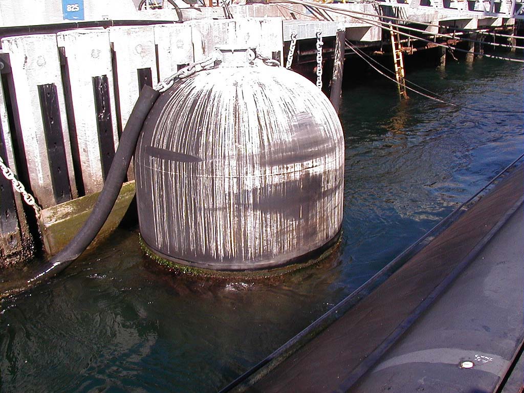 ![]() | 154k | This is a huge bumper to keep the Pasadena (SSN-752) from hitting the dock. They use many of them. | USN photo & text courtesy of usspasadena.org.& submitted by Bill Gonyo. | |