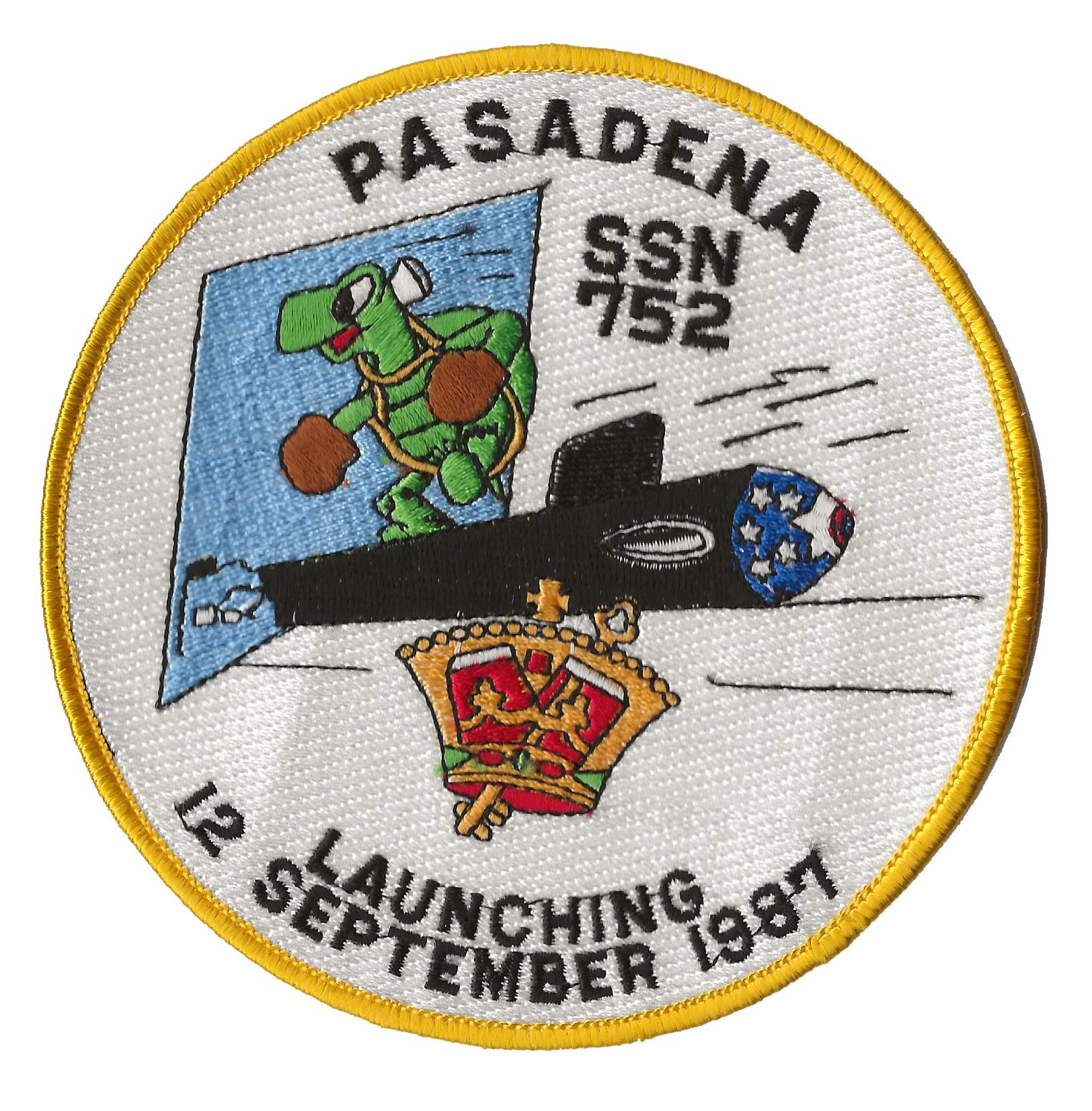 ![]() | 20k | Commemorative postal cover issued on the occasion of the Pasadena's (SSN-752) launching at the Electric Boat Division, General Dynamics Corp., Groton, CT., 12 September 1987. | Courtesy of Jack Treutle (of blessed memory). | |