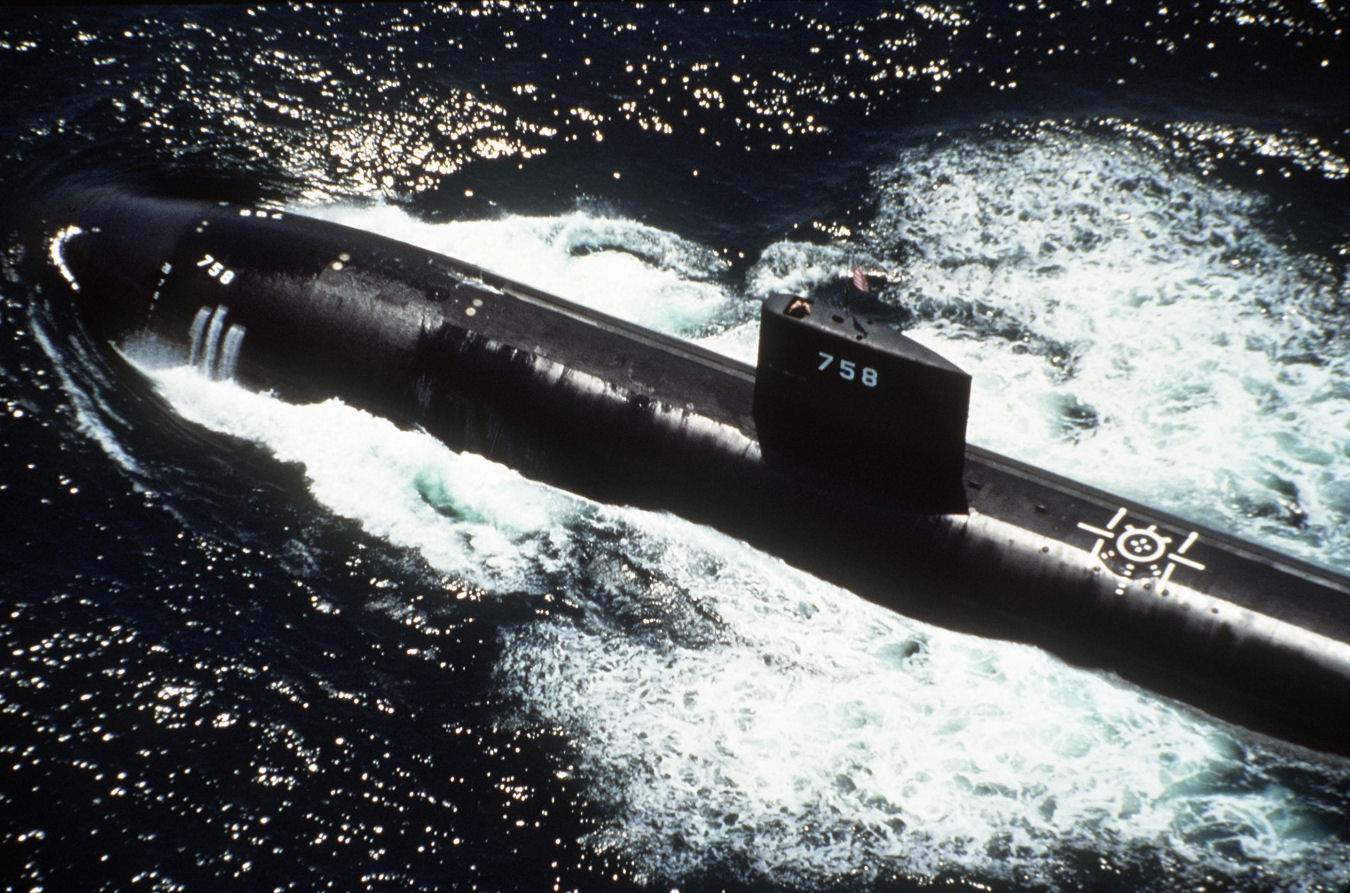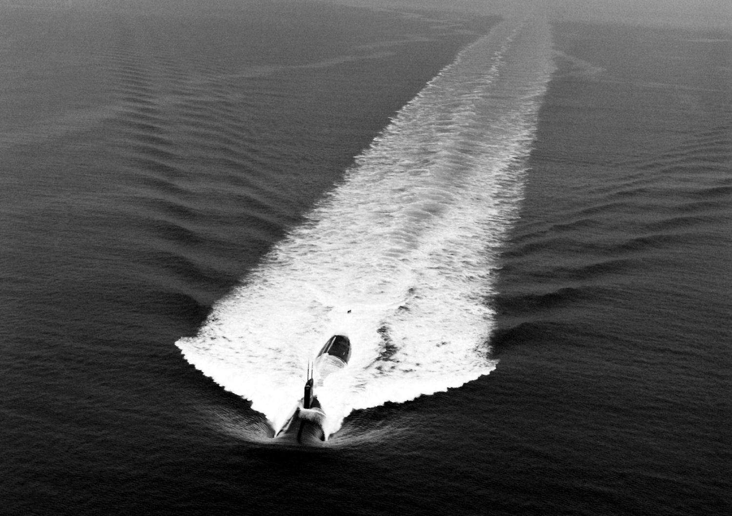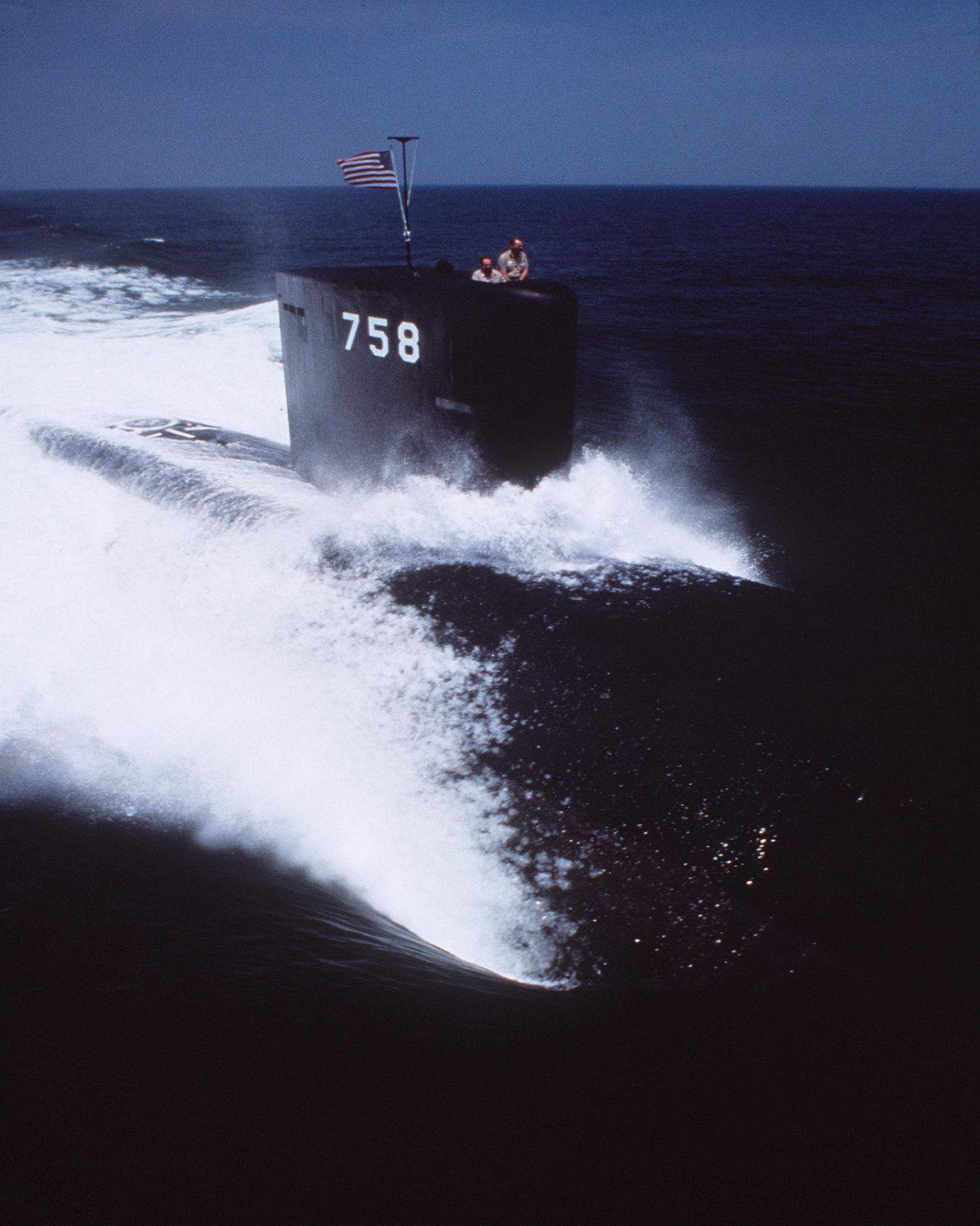 ![]() | 250k | A starboard bow view of the nuclear-powered attack submarine Asheville (SSN-758) underway at high speed off the Virginia Capes during sea trials on 10 June 1991. | Official USN photo # DN-ST-95-01638 by Chris Oxley, courtesy of Newport News Shipbuilding, from the Department of Defense Still Media Collection, courtesy of dodmedia.osd.mil. | |