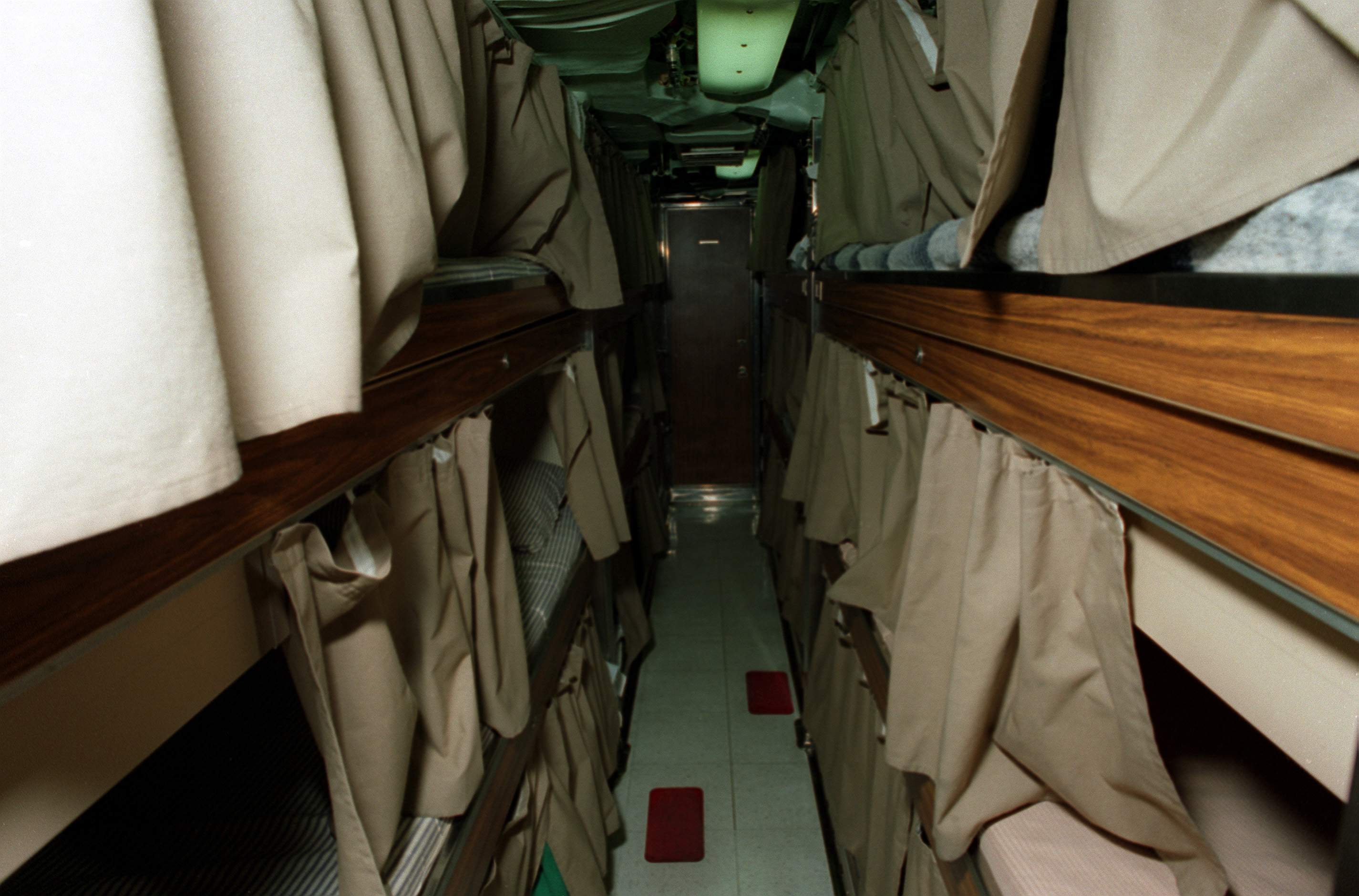 ![]() | 376k | A view looking down through the crews berthing spaces on board the nuclear-powered attack submarine Asheville (SSN-758) on 9 January 1995. | Official USN photo # DN-SC-95-01780 by PH2 Rick Gilmore, courtesy of Newport News Shipbuilding, from the Department of Defense Still Media Collection, courtesy of dodmedia.osd.mil. | |