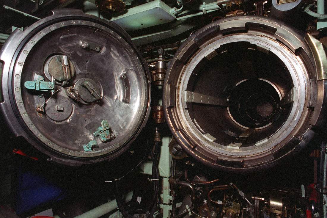 ![]() | 138k | Looking past the open breech door into the number two torpedo tube on board the nuclear-powered attack submarine Asheville (SSN-758) on 9 January 1995. | Official USN photo # DN-SC-95-01774 by PH2 Rick Gilmore, courtesy of Newport News Shipbuilding, from the Department of Defense Still Media Collection, courtesy of dodmedia.osd.mil. & submitted by Bill Gonyo. | |