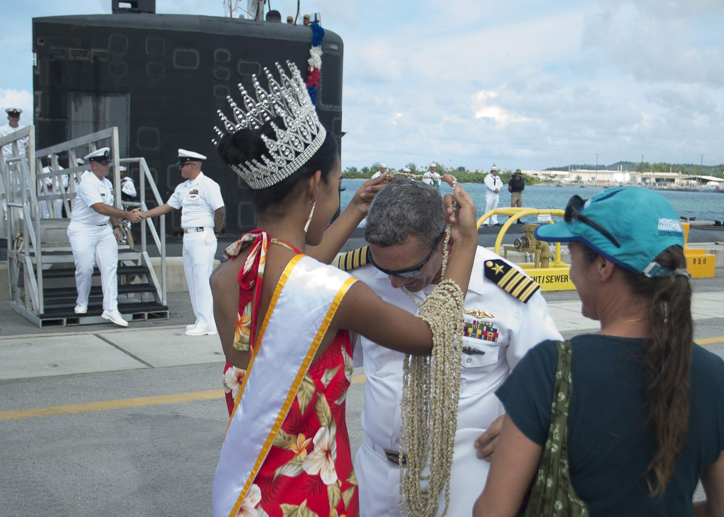 ![]() | 334k | Most beautiful Cruz missile greets the Asheville (SSN-758). Capt. Paul Pampuro, commanding officer of attack submarine Asheville, is welcomed to Guam by Destiny Cruz, 2017 Miss World Guam, during the submarine's arrival celebration at Naval Base Guam on 14 December 2017. Asheville replaced Chicago (SSN-721) as Guam's fourth forward-deployed submarine. | USN photo # 171214-N-PK553-077 courtesy of Culinary Specialist Submarines Seaman Jonathan Perez via navy.mil. | |