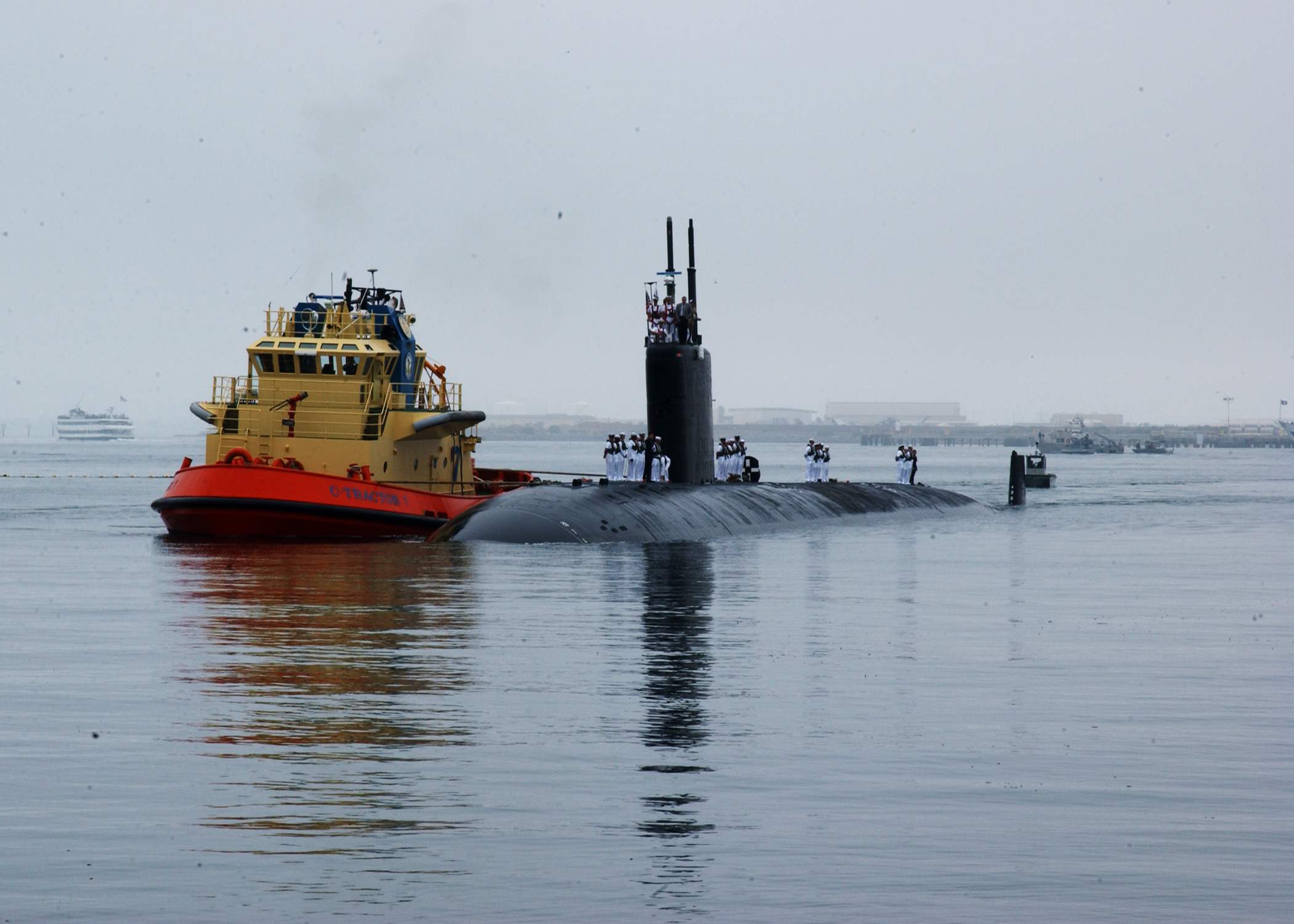 ![]() | 415k | The attack submarine Asheville (SSN-758) prepares to moor alongside the submarine tender Frank Cable (AS-40) at Subic Bay, Philippines on 8 June 2013. Frank Cable, forward deployed to the island of Guam, conducts maintenance and support of submarines and surface vessels deployed in the U.S. 7th Fleet area of responsibility. | USN photo # 130608-N-CO162-043, by Mass Communication Specialist 3rd Class Chris Salisbury. | |