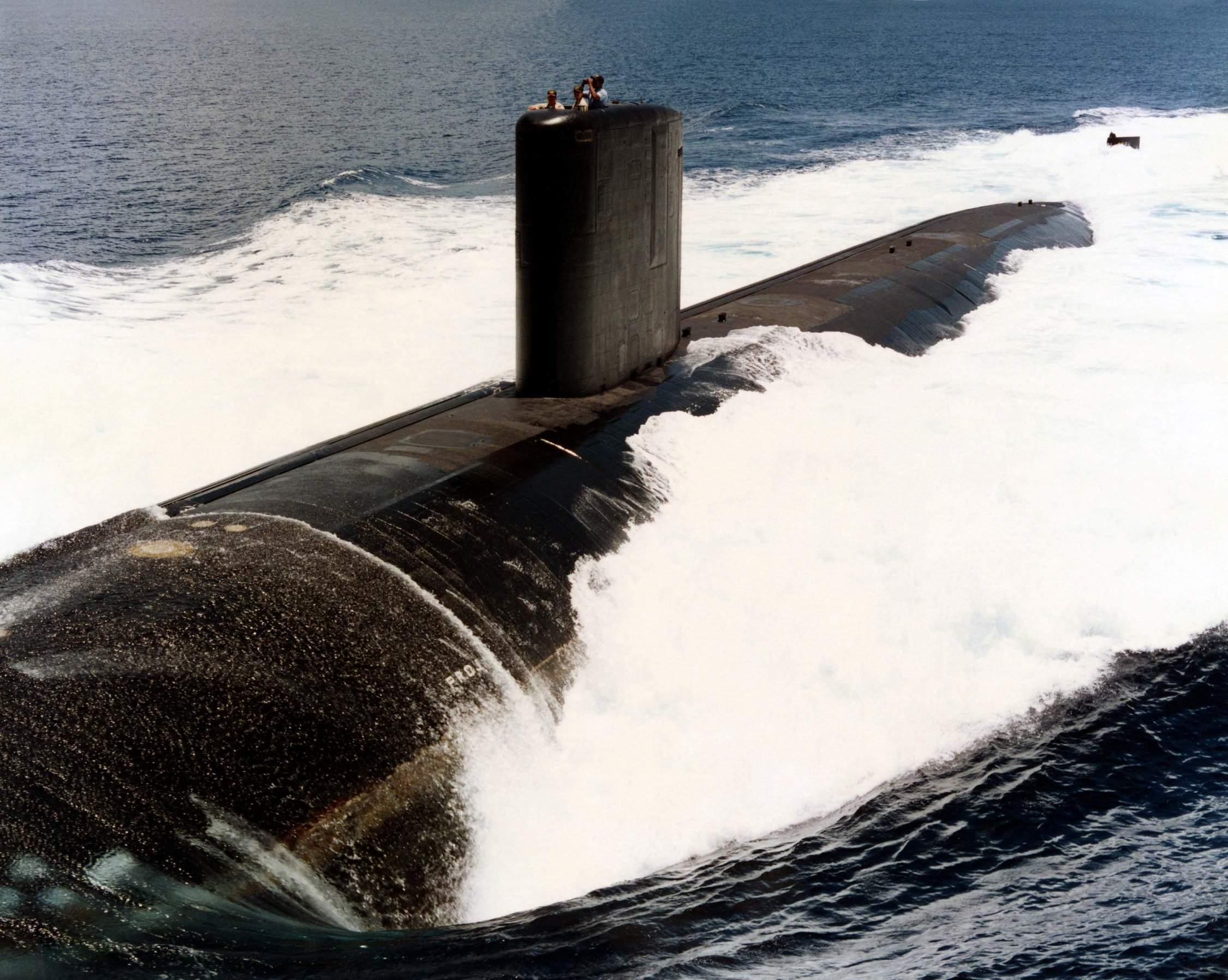 ![]() | 429k | A trio of submarines, the Pasadena (SSN-752) (top), Republic of Korea Ship Lee Jong Moo (SS-66) (center) and Columbus (SSN-762), (bottom) patrol the Pacific Ocean during Exercise RIMPAC '98, 19 July 1998. | USN photo N-5961C-001 by Photographer's Mate JO1 Spike Call, courtesy of news.navy.mil. | |