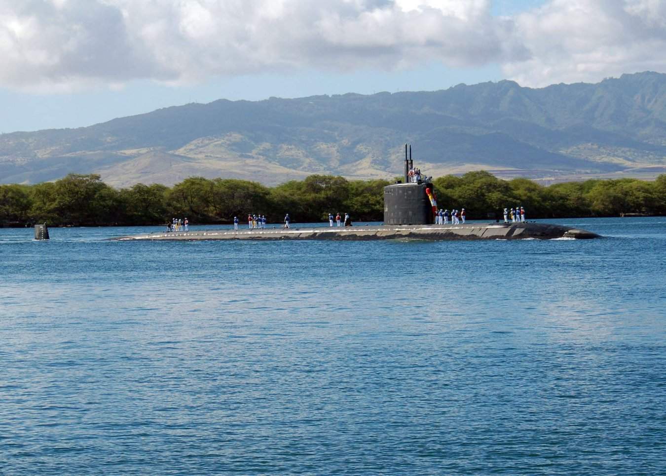 ![]() | 160k | The fast attack submarine Columbus (SSN-762) returns to Naval Station Pearl Harbor on 22 December 2006 just in time for the holidays. Columbus, homeported in Pearl Harbor, completed a two-year overhaul at Submarine Base Bangor, Wash. | USN photo # N-9486C-001 by Mass Communication Specialist 1st Class Cynthia Clark, courtesy of news.navy.mil. | |