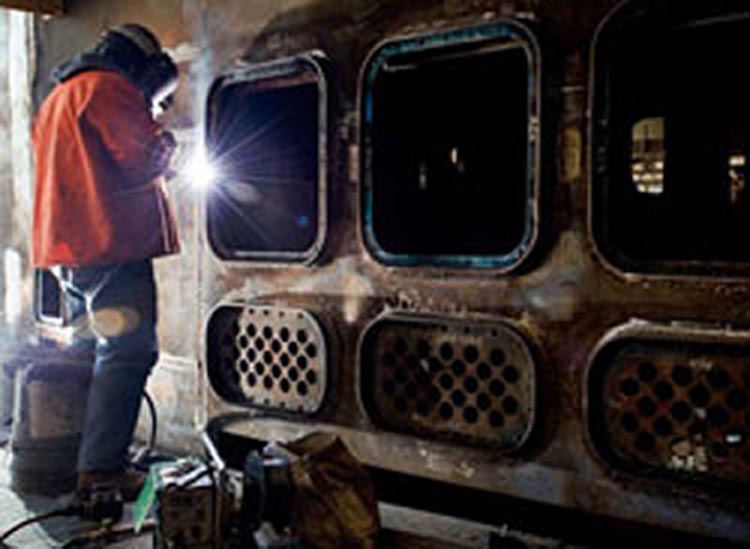 ![]() | 2.34k | Newport News shipbuilders work on the sail of Mississippi (SSN-782) in 2009. | Photo # DCS09-435-99 by John Whalen, courtesy of huntingtoningalls.com. | |