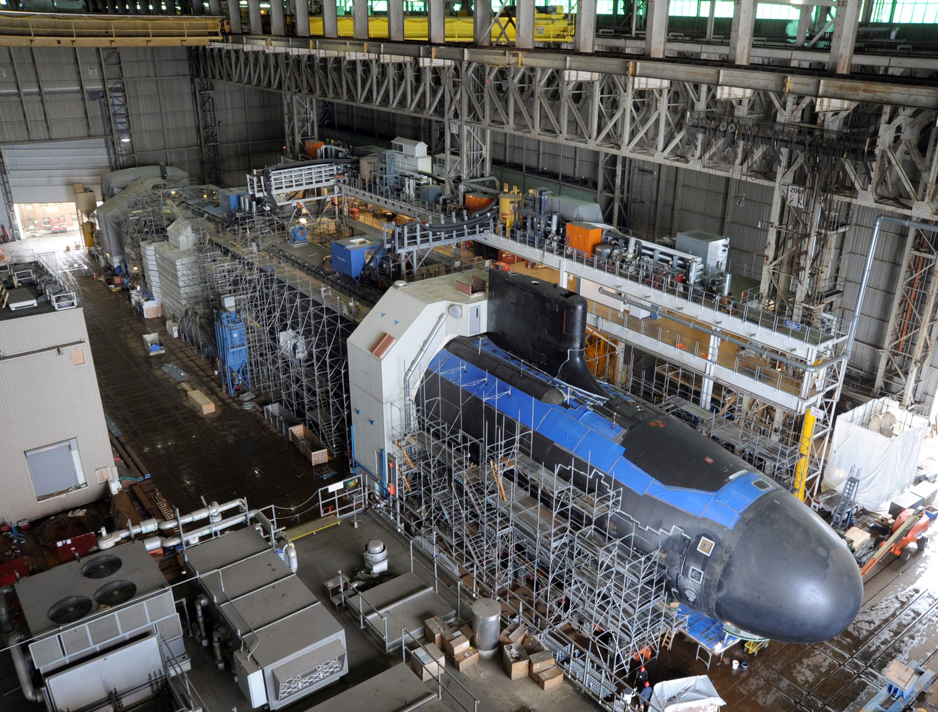 ![]() | 1.13k | Several Virginia-class submarine units are worked on simultaneously in Newport News Shipbuilding's Ring Module Shop in 2010. | Photo # DCS10-444-100 by John Whalen, courtesy of huntingtoningalls.com. | |