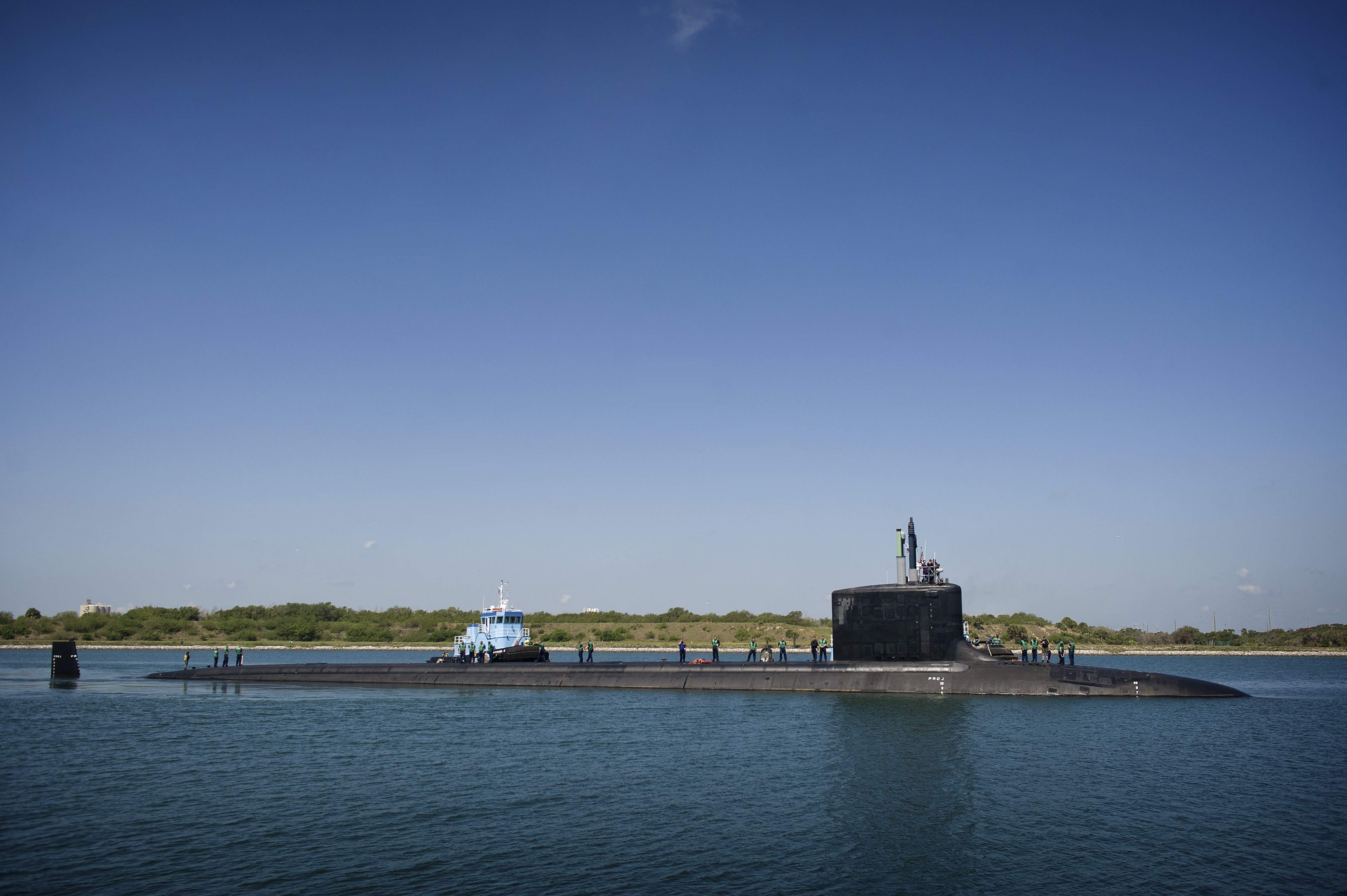 ![]() | 361k | The attack submarine Mississippi (SSN-782) pulls into the port of Cape Canaveral, Fla., on 22 May during a transit from Groton Conn., to Pascagoula, Miss., for the submarine's commissioning on 2 June. | USN photo # N-MG658-020 courtesy of Mass Communication Specialist 2nd Class Todd Frantom via navy.news.mil. | |