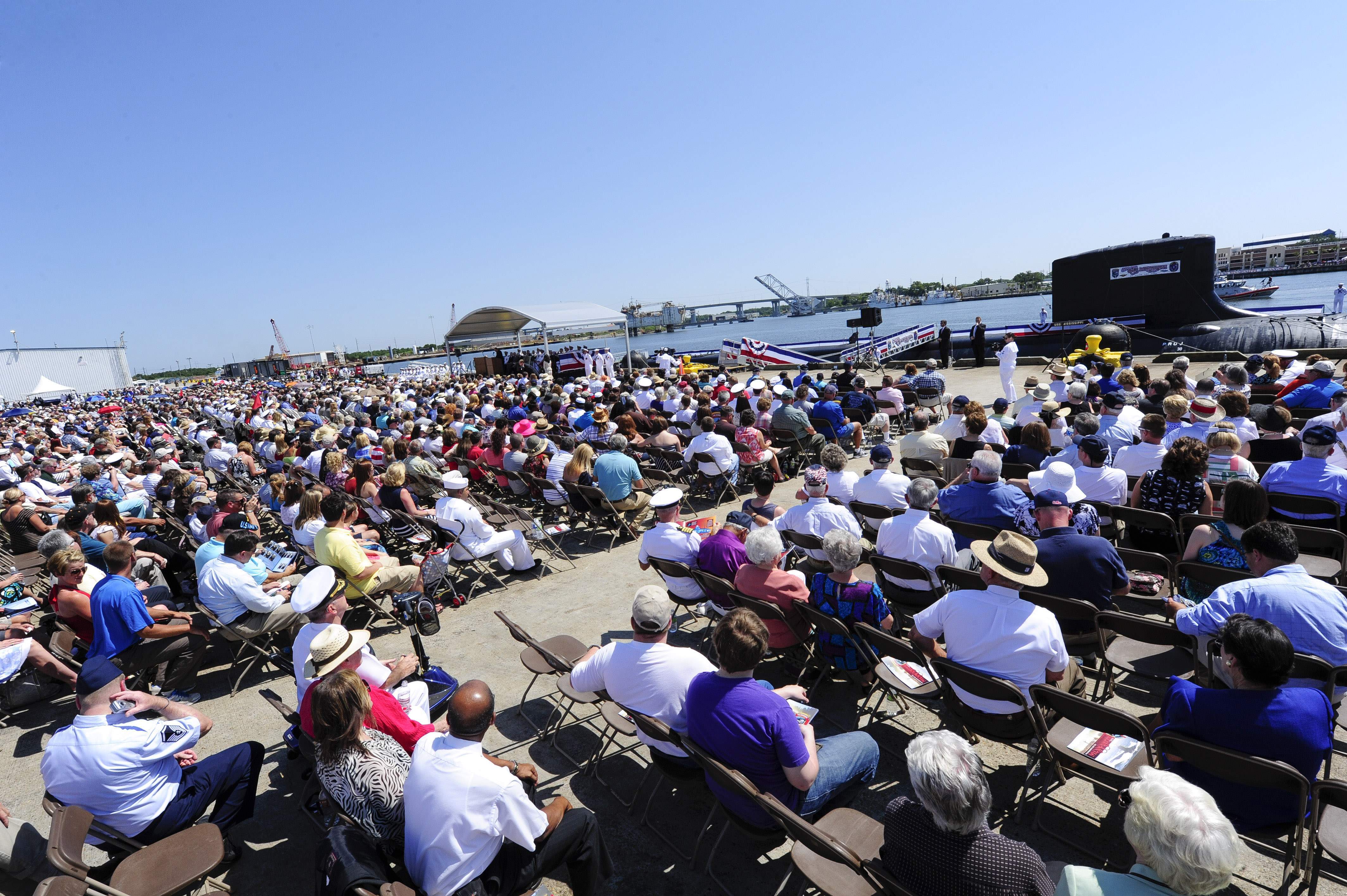 ![]() | 1.40k | Thousands attend the commissioning ceremony for the Navy's attack submarine Mississippi (SSN-782). | USN photo # N-WL435-214 courtesy of Mass Communication Specialist 1st Class Peter D. Lawlor via navy.news.mil. | |