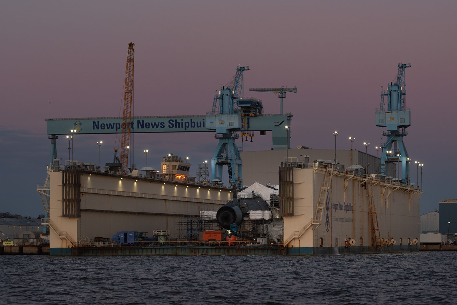 0879416 | 237k | Montana (SSN-794) patiently waits to be launched from Newport News Shipbuilding's floating dry dock into the James River, January-February 2021. | Photo # 12-DCS20-459-154 by Ashley Cowan/HII, courtesy of cms.ipressroom.com & Bob Haner.