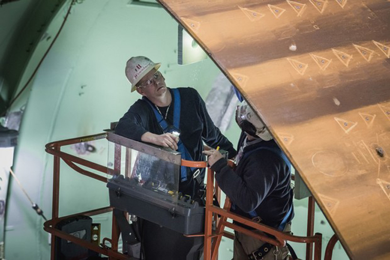 ![]() | 274k | Shipyard fitters working on New Jersey (SSN-796), at Newport News Shipbuilding in Virginia & Technicians Patrick Tarves (l), and Thomas Shaffner work on the New Jersey. | Photos courtesy of Huntington Ingalls Industries via Ted Sherman & nj.com | |