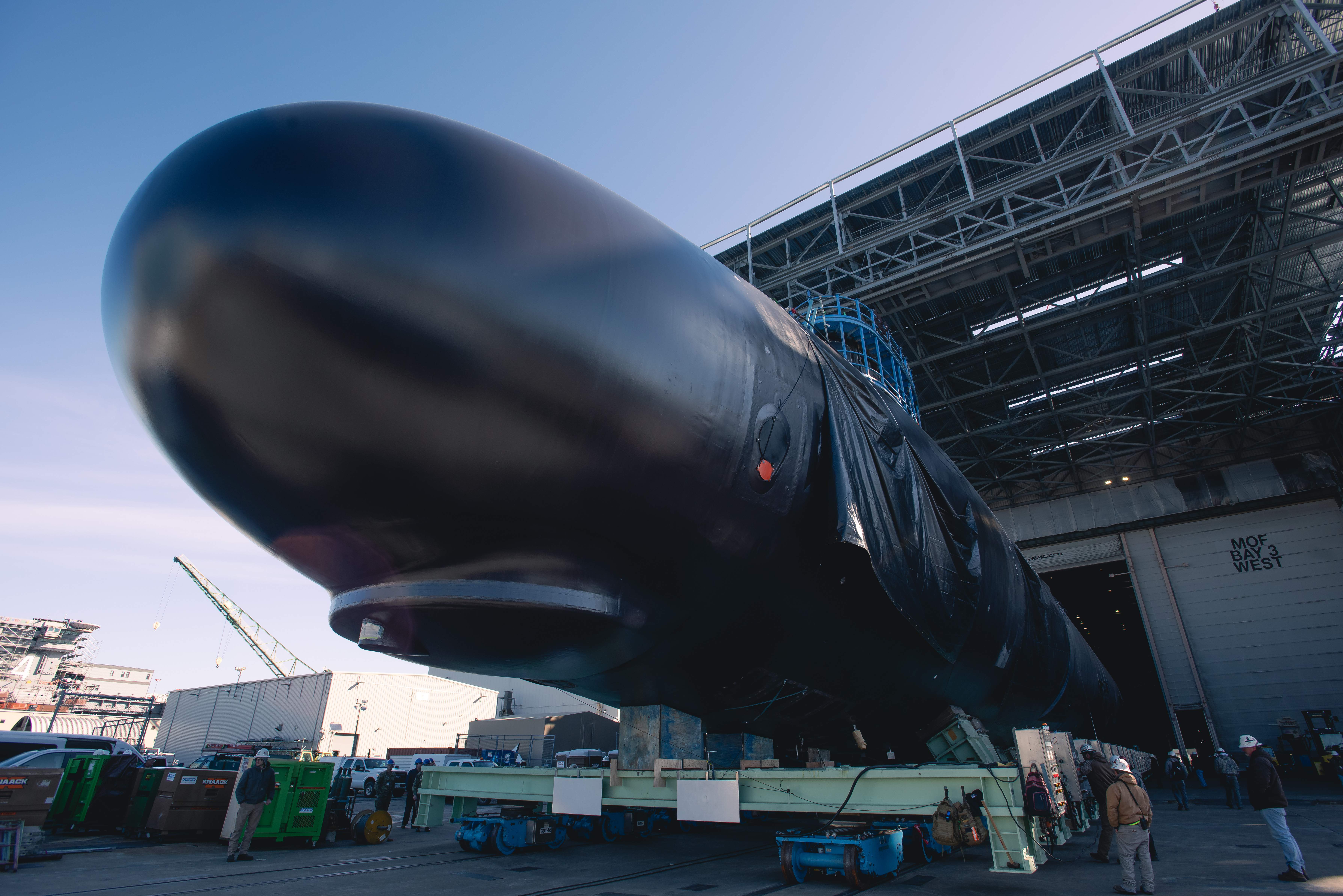 ![]() 0879604 | 2.14k | New Jersey (SSN-796) reached pressure hull complete in February 2021. The construction milestone signifies that all of the submarine’s hull sections have been joined to form a single, watertight unit. The boat is currently 72% complete as of 9 March 2021. | Photo by Matt Hildreth/HII courtesy of cms.ipressroom.com. | |