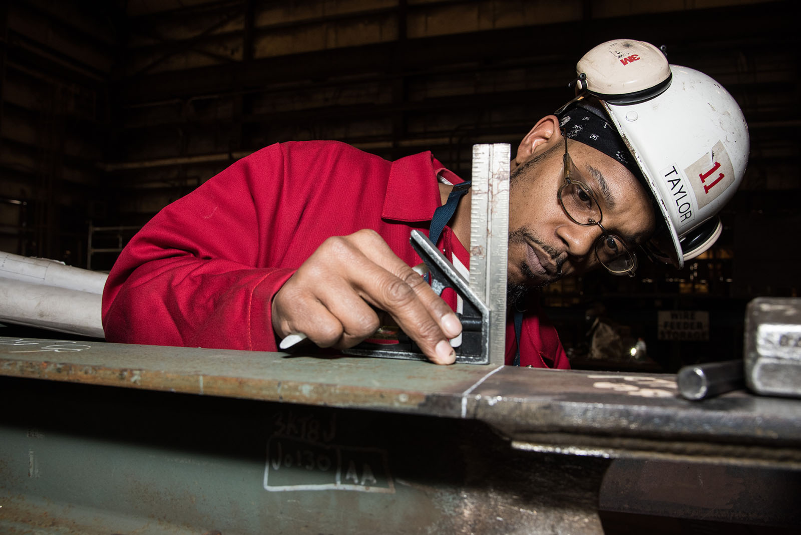 ![]() 0879800i | 672k | Lendell Harris takes a precise measurement of a steel structure being manufactured for a Virginia-class submarine, January and February 2020. (This is not identified as any particular Virginia-class submarine by NNS and it is generic). | Photo # 8-DCS19-634-45 by Ashley Cowan, courtesy of nns.huntingtoningalls.com | |