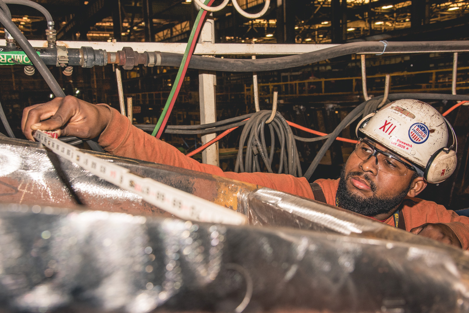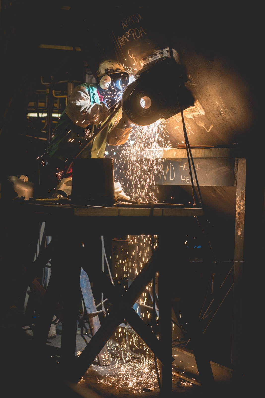 ![]() | 435k | Jose Sanchez makes sparks that drop to the floor while working on a submarine unit in the Steel Production Facility, May 2019. This photo is not identified as any particular Virginia-class submarine by NNS and it is generic). | Photo # 6-DCS18-672-821 by Ashley Cowan courtesy of nns.huntingtoningalls.com | |