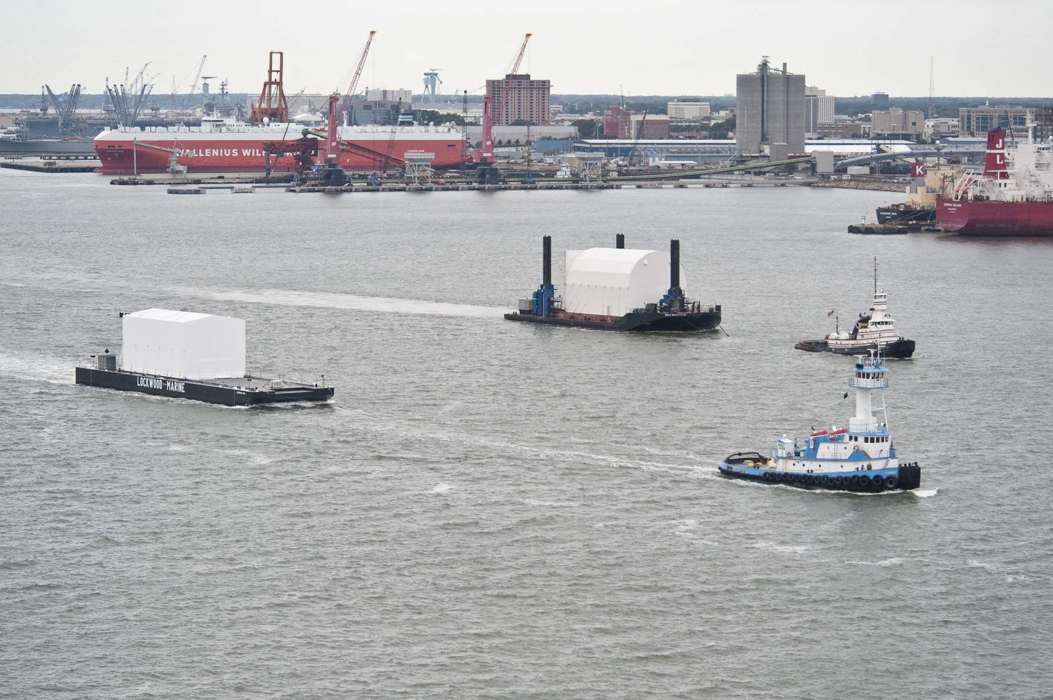 ![]() | 380k | Two Virginia-class submarine modules were moved simultaneously for the first time on Wednesday, 28 August 2014 between Newport News Shipbuilding and General Dynamics Electric Boat's facilities in southern New England. The increased shipment capacity is in support of the U.S. Navy's two-submarines-per-year build rate. (This is not identified as any particular Virginia-class submarine by NNS and it is generic). | Photo # VCS_Sea_Shuttles, courtesy of nns.huntingtoningalls.com | |