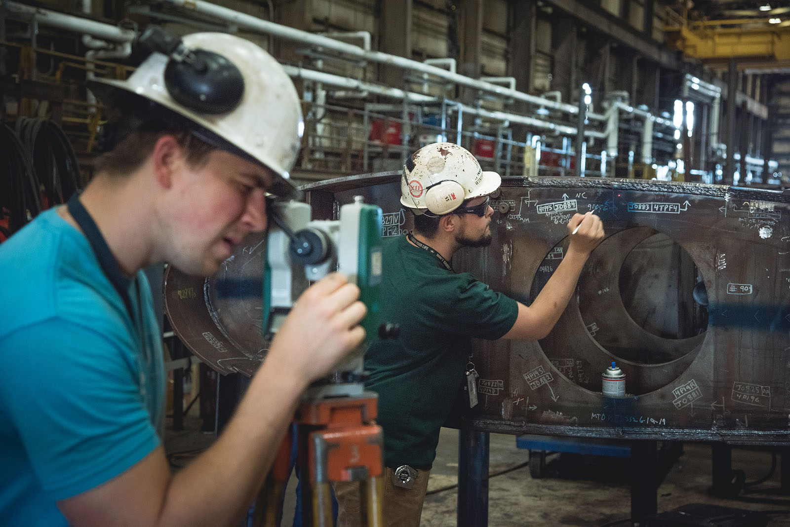 ![]() | 259k | Matthew Good and Zachary Ensley use a laser scanner to supply the Virginia-class submarine program with measurement and analysis services, March 2016. (This is not identified as any particular Virginia-class submarine by NNS and it is generic). | Photo # DCS15-726-3 by John Whalen, courtesy of nns.huntingtoningalls.com | |
