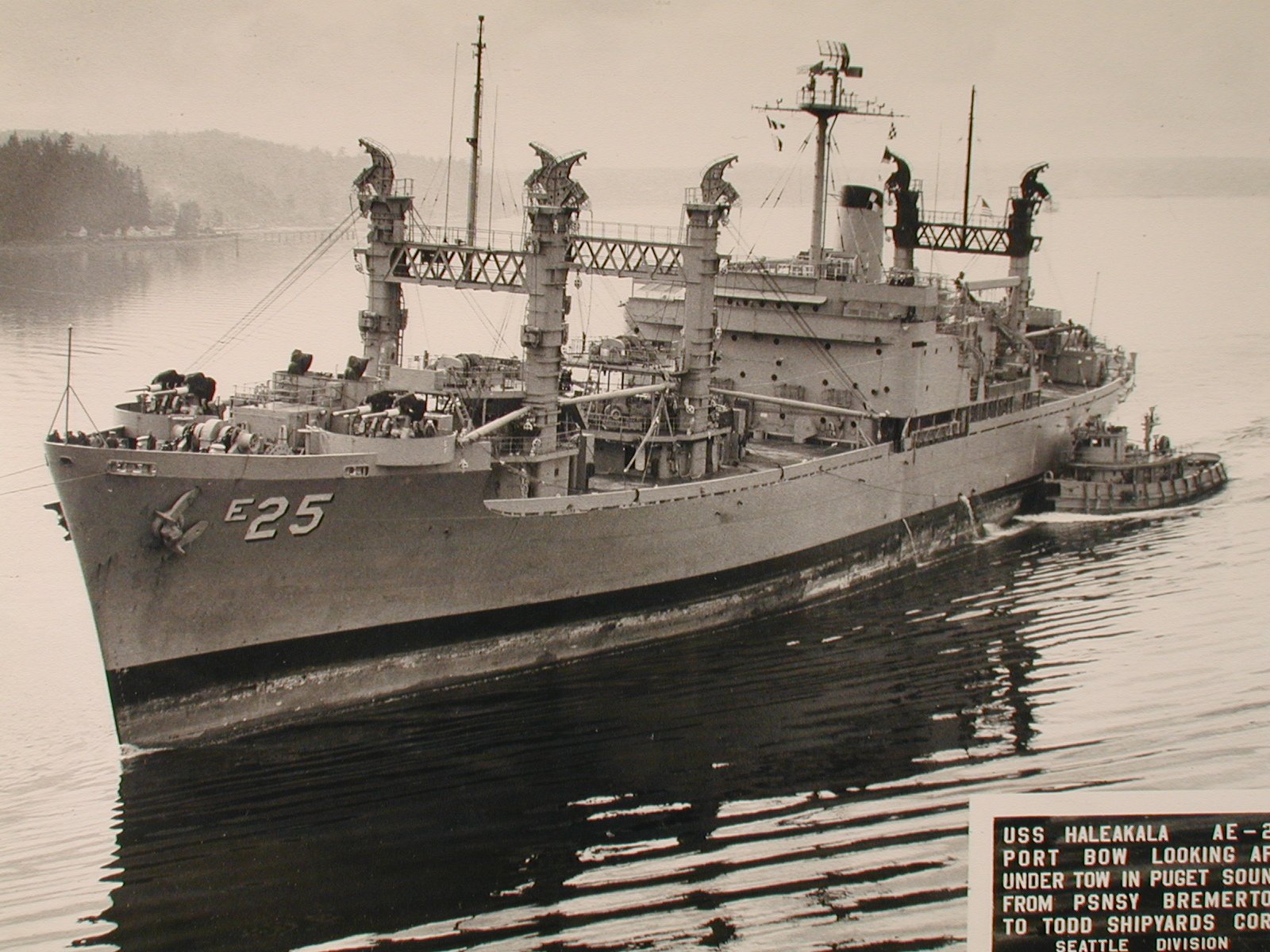 142k | USS Haleakala (AE-25) under way in harbor, date and location unknown. | Richard Miller BMCS USNR Ret. | |