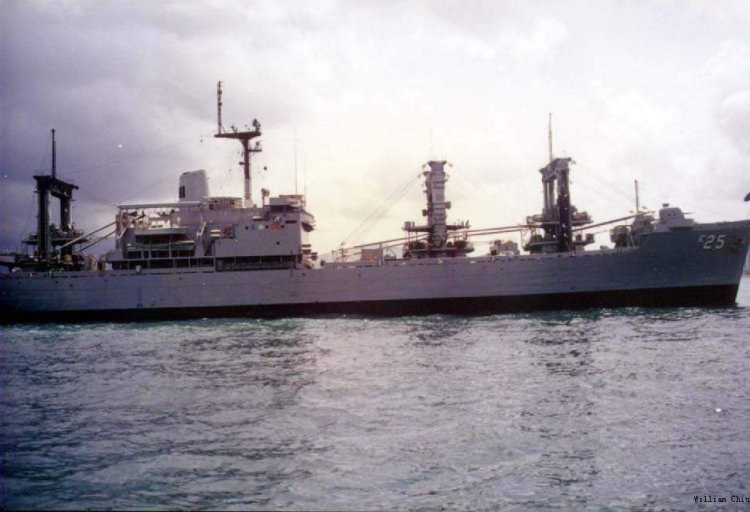 212k | USS Haleakala (AE-25) at anchor off Singapore, 12 April 1992. Photo by Simon Olsen. |