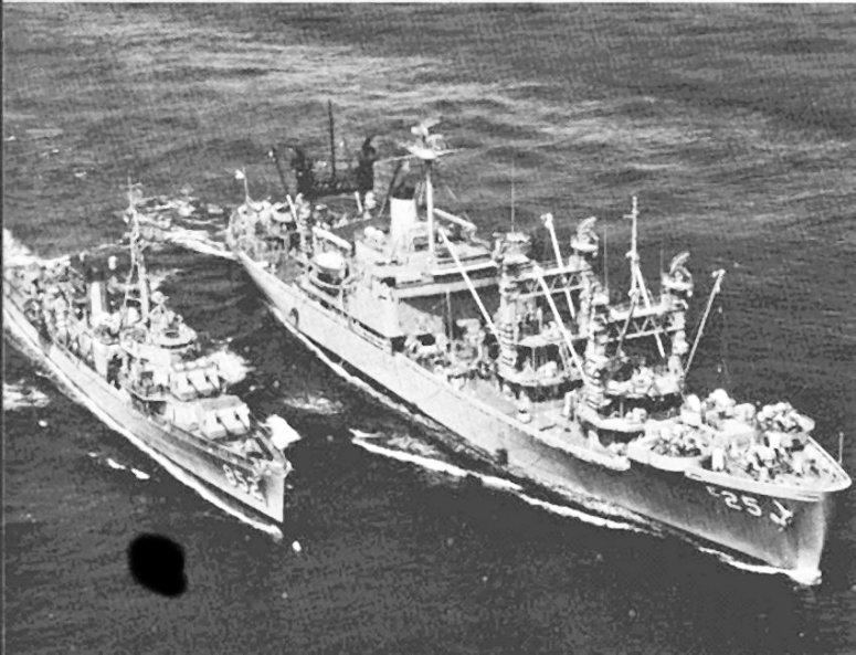 104k | USS Haleakala (AE-25) and USS Leonard F. Mason (DD-852) underway, date and location unknown. US Navy photo from "All Hands" magazine, February 1964. |