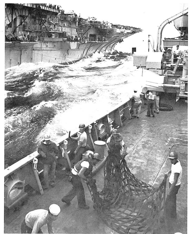 154k | USS Haleakala (AE-25) resupplying a Coast Guard cutter off the coast of Vietnam, date unknown. US Navy photo |