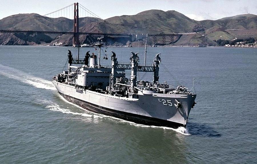 92k | USS Haleakala (AE-25) standing in at San Francisco Bay after passing under the Golden Gate Bridge, date unknown. | Richard Miller BMCS USNR Ret. | |