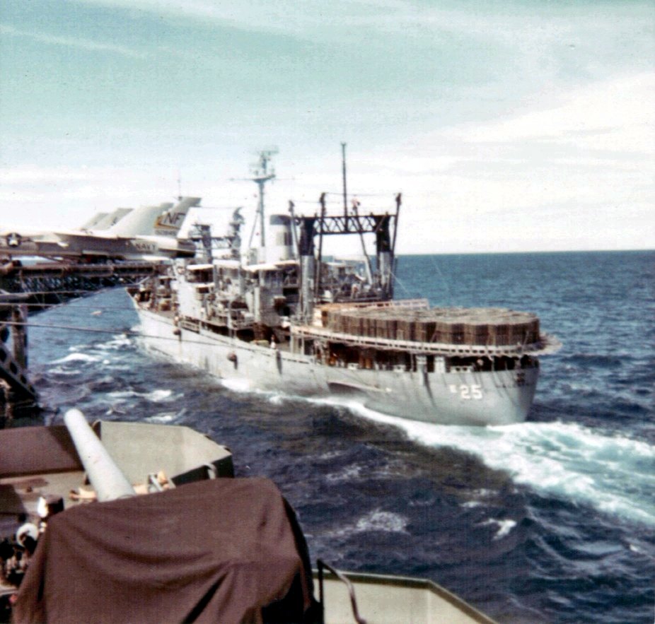 227k | USS Haleakala (AE-25) rearming USS Intrepid (CVS-11) in the South China Sea, circa March-April 1966. US Navy photo |