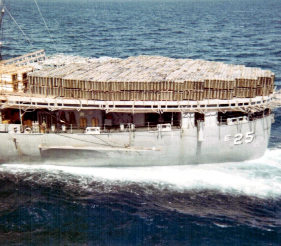 138k | USS Haleakala (AE-25) transferring a weapon by hi-line, date and location unknown. | Richard Miller BMCS USNR Ret. | |