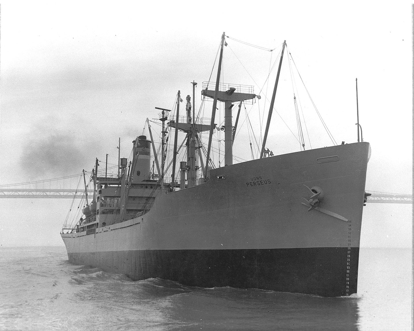 USNS Perseus (T-AF-64) under way, in San Francisco Bay, 29 August 1963.
