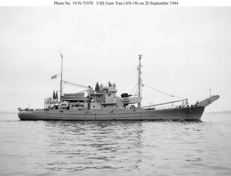 140k | USS Gum Tree (AN-18) underway near the Boston Navy Yard, 20 September 1944. US Navy photo from the collections of the US Navy Memorial. |