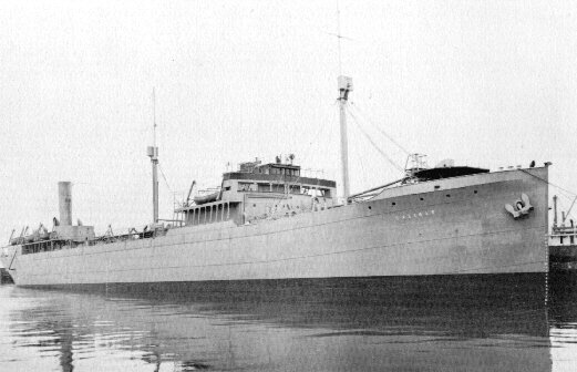82k | USS Salinas (AO-19) at anchor with ship's boat alongside, date and location unknown. US Navy photo from "Gray Steel and Black Oil: Fast Tankers and Replenishment at Sea in the U.S. Navy, 1912-1992", by Thomas Wildenburg. |