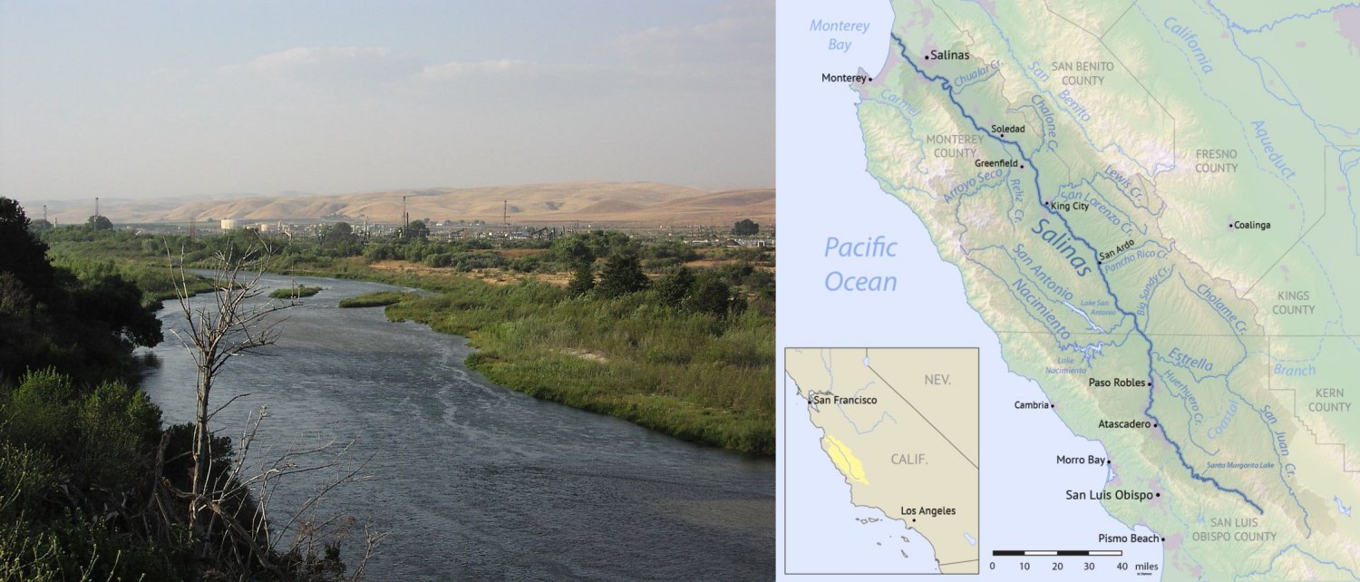 176k | Photo - San Ardo Oil Field, with the Salinas River in the foreground, May 2008 ©Antandrus Map - Map of the Salinas River watershed in Central California, USA. Made using USGS National Map data ©Shannon1 | Tommy Trampp | |