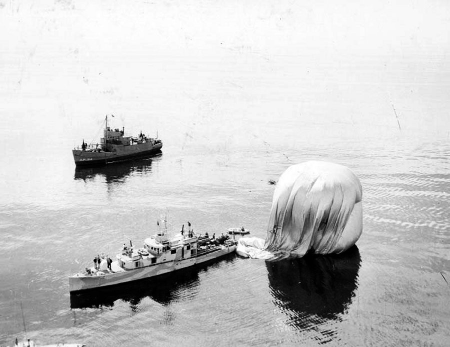 89k | USS APc-94, YP-600 and USS Patriot (PYc-7) assisting in salvage operation of blimp K-14 off Bar Harbor, ME., 3 July 1944, K-14 belonged to Airship Patrol Squadron Eleven (ZP-11), stationed at NAS South Weymouth, MA. National Archives photo |