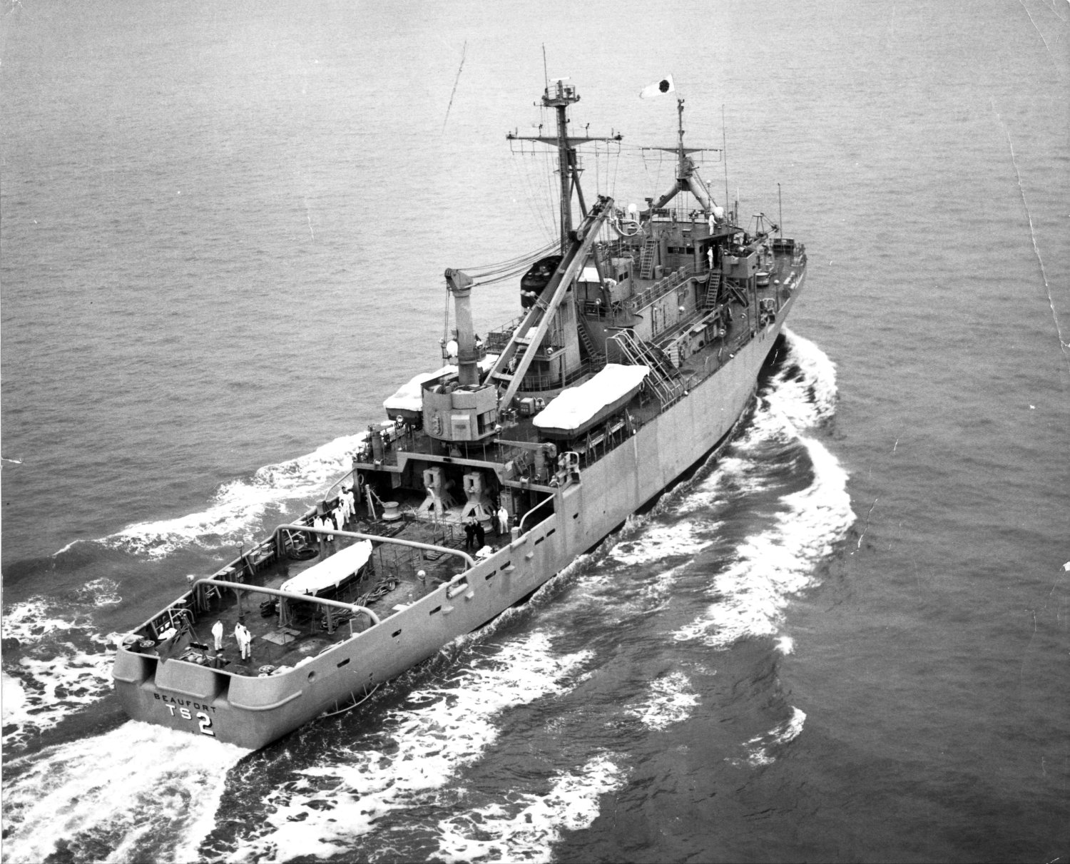 108k | USS Beaufort (ATS-2) hoists the tail of a Patrol Squadron