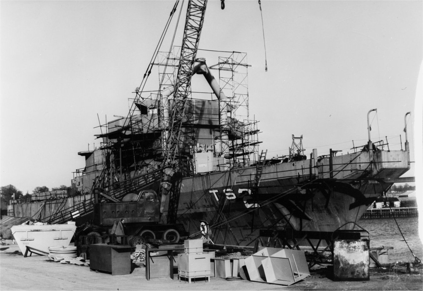 70k | Stern view of Beaufort (ATS-2) builders 40% progress photo, March 1969, Brooke Marine Limited, Lowestoft, U.K.