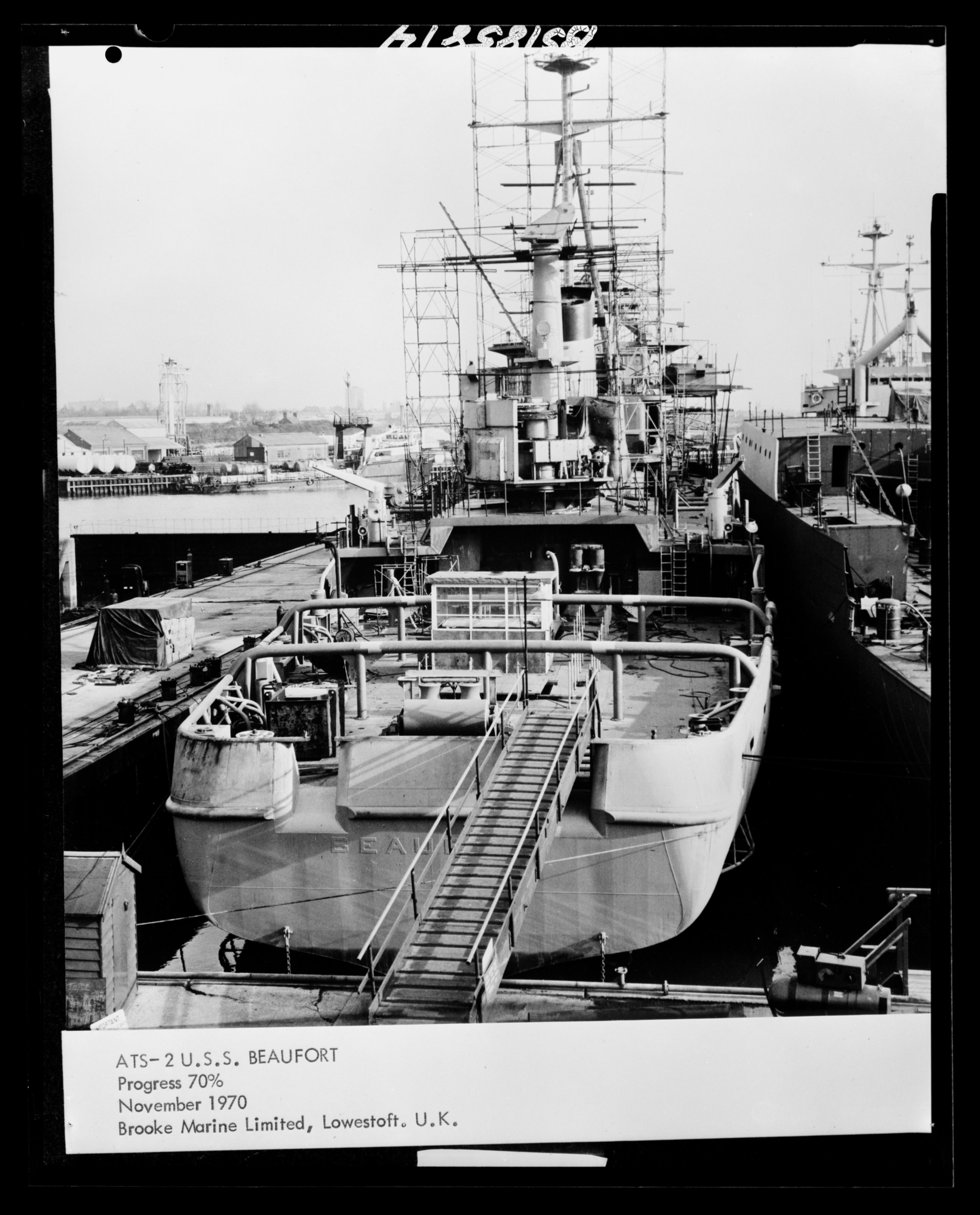 494k | Beaufort (ATS-2) builders 60% progress photo, May 1970, Brooke Marine Limited, Lowestoft, U.K.