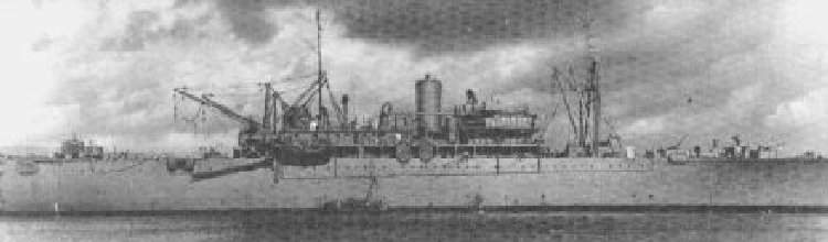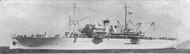 heavier-than-air aircraft tender (AV). The balloon well and nearly all of the balloon platform have been removed, leaving the ship with clear deck space both fore and aft for tending seaplanes.
