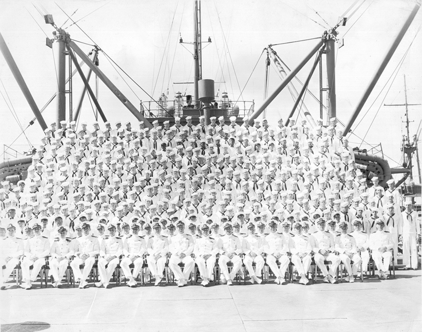 319k | USS Wright (AG-79) crew photo, date unknown. Photo is believed to have been taken prior to name change to San Clemente (AG-79). | Ray Meiser contributed this photo. His father, Gaelen George Meiser, was a crew member in Wright at the time of the name change | |