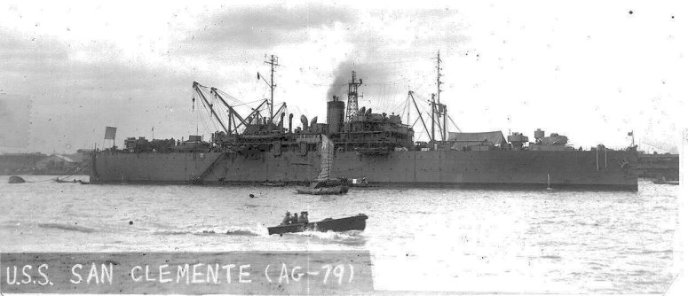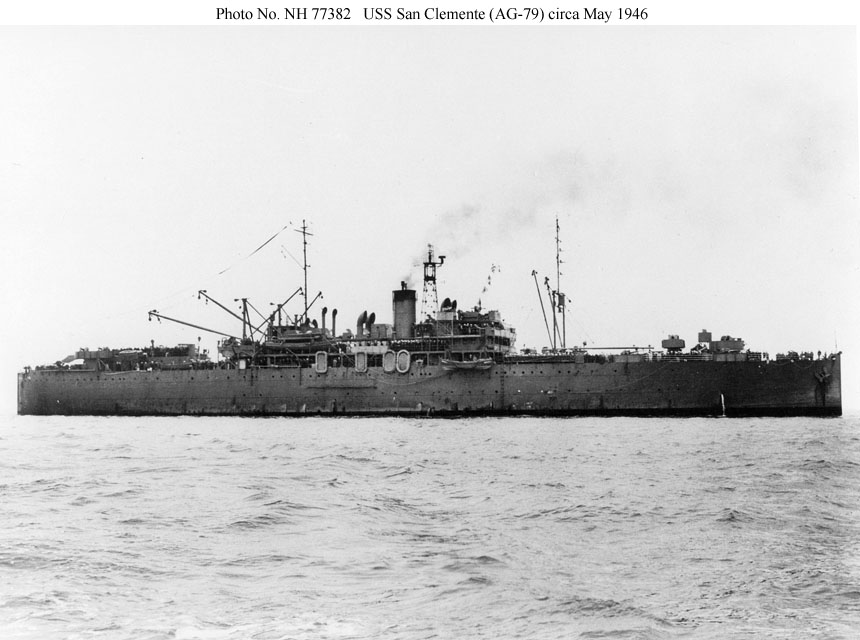 111k | USS San Clemente (AG-79) at San Francisco in May 1946 during a brief stop there enroute the East