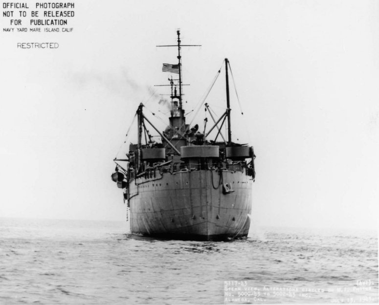 stern under the balloon platform, has not yet been mounted. US National Archives, RG-19-N box 1, Photo # 19-N-7882 a US Navy Bureau of Ships photo now in the collections of the US National Archives, courtesy Shipscribe.com. |