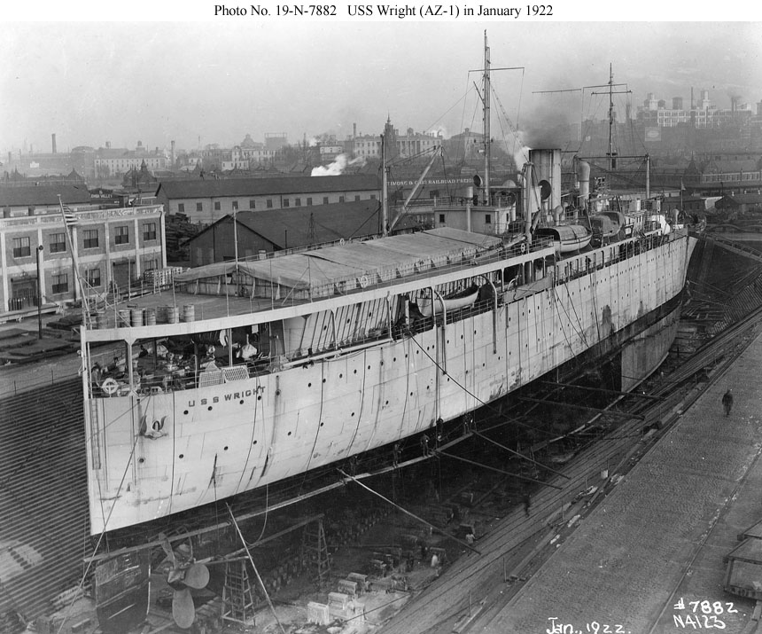 184k | USS Wright (AZ-1) in drydock in January 1922 at New York Navy Yard after conversion to a