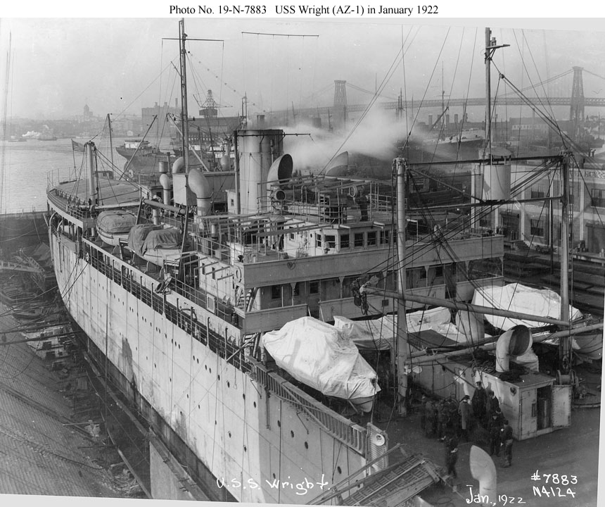 62k | USS Wright (AV-1), starboard aerial view US National Archives photo # 80-G-463531, a US Navy photo now in the collections of the US National Archives |